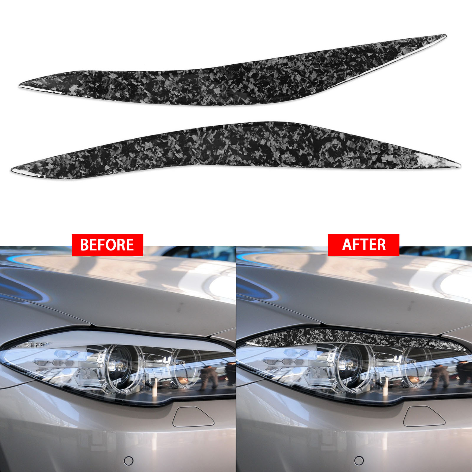 2pcs/Set Forged Carbon Fiber Front Headlight Eyebrow Eyelid Cover Trim