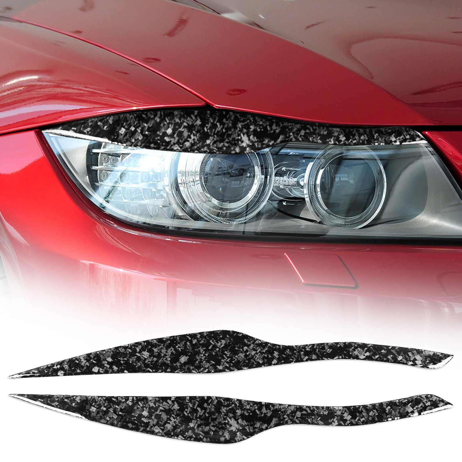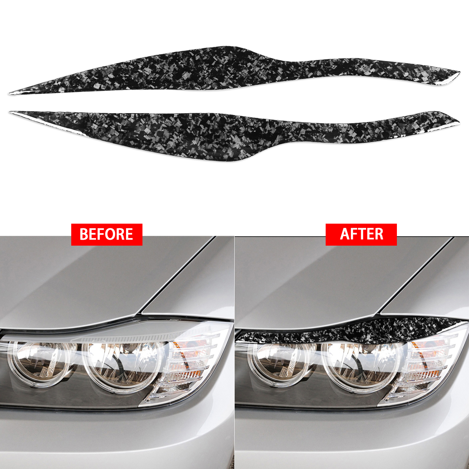 2pcs/Set Forged Carbon Fiber Front Headlight Eyebrow Eyelid Cover Trim