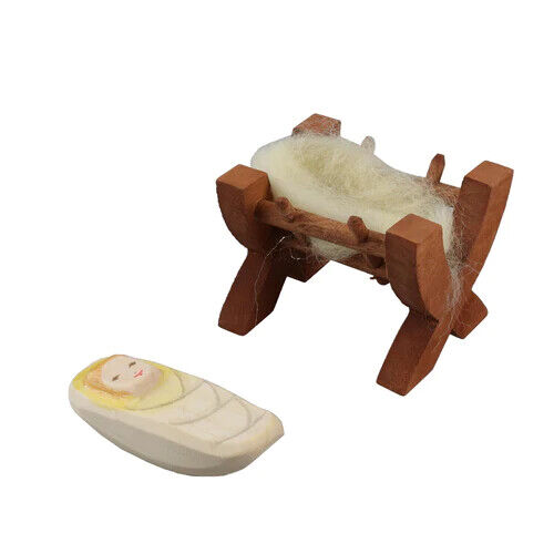 Diese heilige Familie besteht aus Josef II (42112), Maria II (42111) und dem Jesuskind in der Krippe (42113). Das Kind liegt dabei auf einem Bündel Dekowolle. Sowohl die Wolle als auch das Kind selbst können aus der Krippe herausgenommen werden.