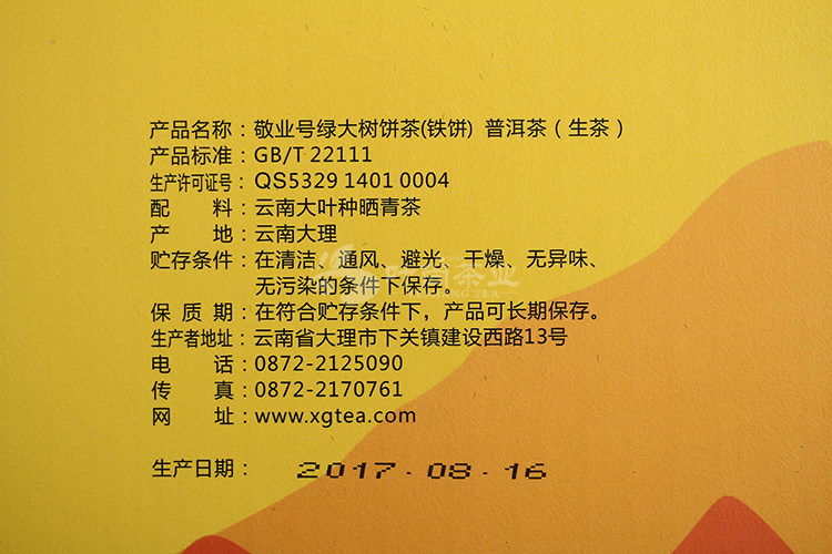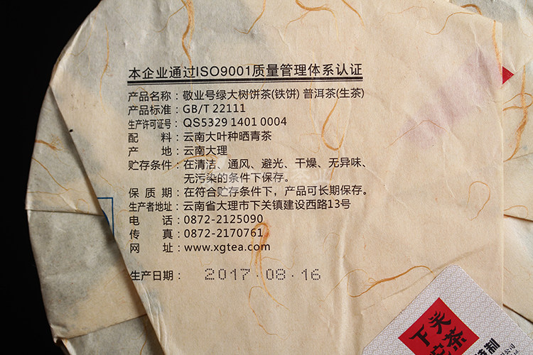 Type: Pu-erh Tea Manufacturer: Yunnan Xiaguan Tuocha(Group) Co.,Ltd. Net Weight: 357g Packaging: Cotton Paper Process: Uncooked / Raw Tea Origin: China Product date: 2017 year, Description: Arbor tree leaves from Yiwu mountain.