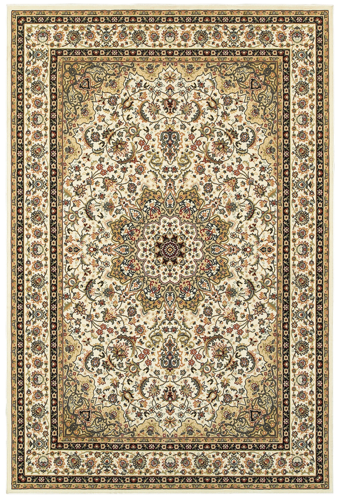 The Kashan collection showcases timeless design in fresh colors of alabaster, true red, deep Atlantic blue, and black with accents of wedgewood, terracotta, soft gold, and sage. This collection boasts traditional Persien patterns and time-honored classics simplified for today's more relaxed yet sophisticated interiors. Machine-made of polypropylene, the Kashan collection has a soft, luxurious hand and dense pile. Size Range: 2' x 3', Color Family: Tans & Ivories, Material: Synthetics, Shape: Rectangle