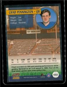 2000 PACIFIC ROOKIE College Football Card #432 CHAD PENNINGTON Marshall College Thundering Herd