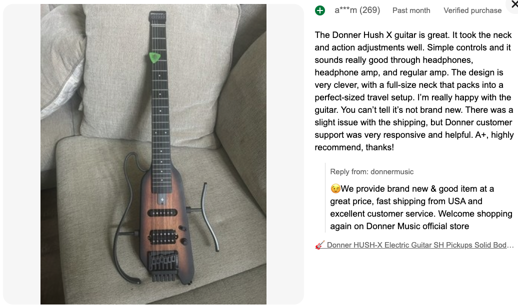 【 Travel-Friendly Companion 】 Designed for the musician on the move, Donner travel electric guitar boasts a lightweight, headless design, weighing in at only 4.4 pounds and featuring a compact size that is just half of a traditional electric guitar.