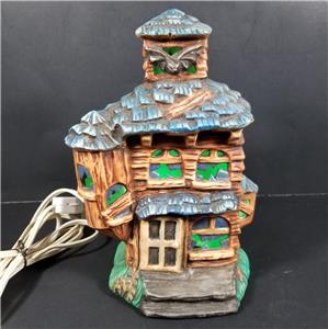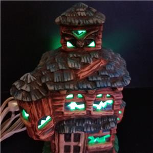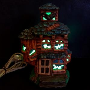 Vintage 1983 Ceramic Haunted House that Lights Up with a Green Bulb.