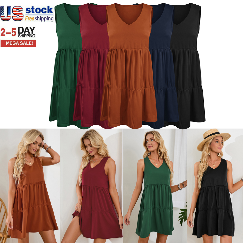 100% Brand New, High Quality, Stylish Design. Fashionable women's tank top sleeveless dress. Make you more sexy, charming and charming. Material: 100% polyester fiber Size: S/M/L/XL/2XL Soft and light, comfortable to wear. You can pair it with leggings, bodysuits or coats, jackets, sweaters for different beautiful looks. The perfect dress for casual, pregnancy, wedding, party, vacation, work, office, business, everyday life. PLEASE NOTE: Actual colors may differ slightly from pictures due to lighting effects and different screen display settings