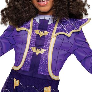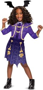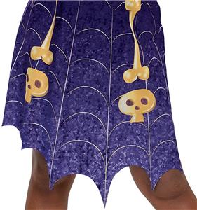 STYLISH VAMPIRINA DRESS FOR GIRLS - This costume dress features a purple dress with sparkling gold detailing over printed bat and bone graphics