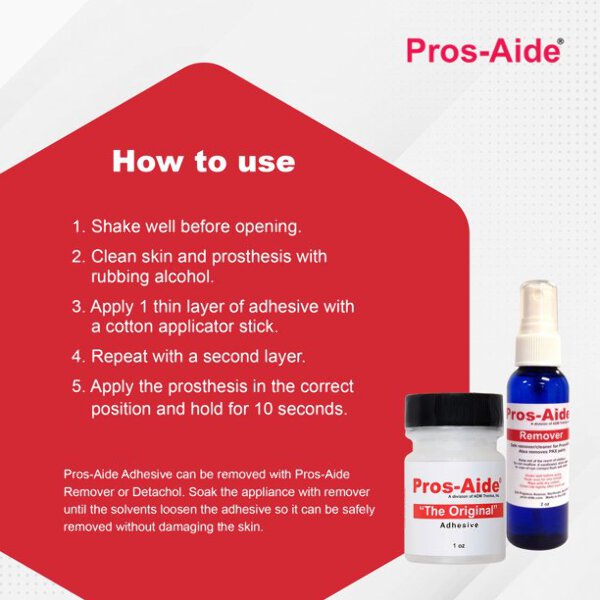 Today, Pros-Aide® continues to be the unanimous choice for the professional make-up artist in film, TV and stage.Instructions for Adhesion of Prostheses: