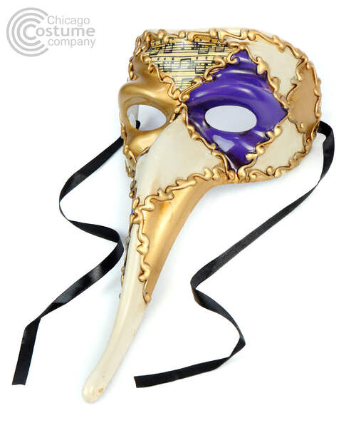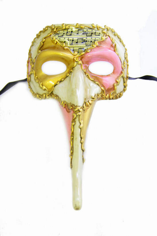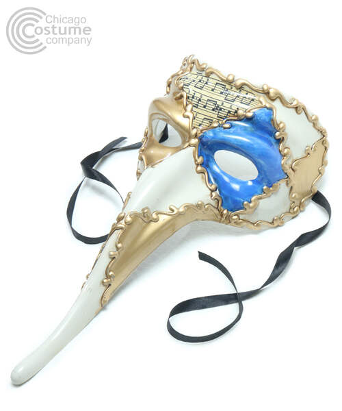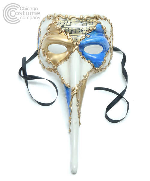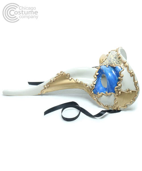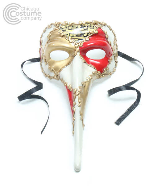 Venetian style, long nose, masquerade mask with painted musical measures and accents.