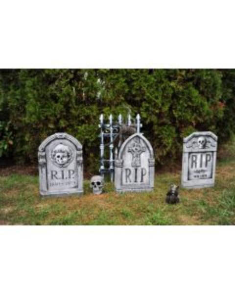Includes 3 uniquely designed tombstones and 6 stakes