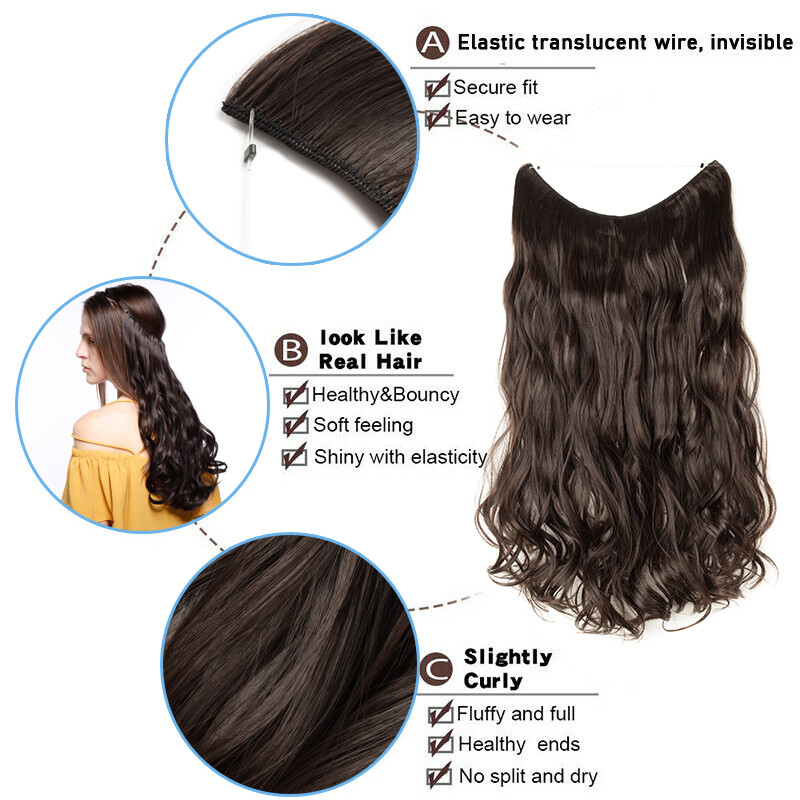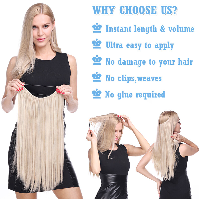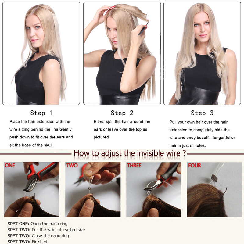 US Wire In Hair Extensions Elastic Band Secret Miracle Ring 100% Real Thick Hair