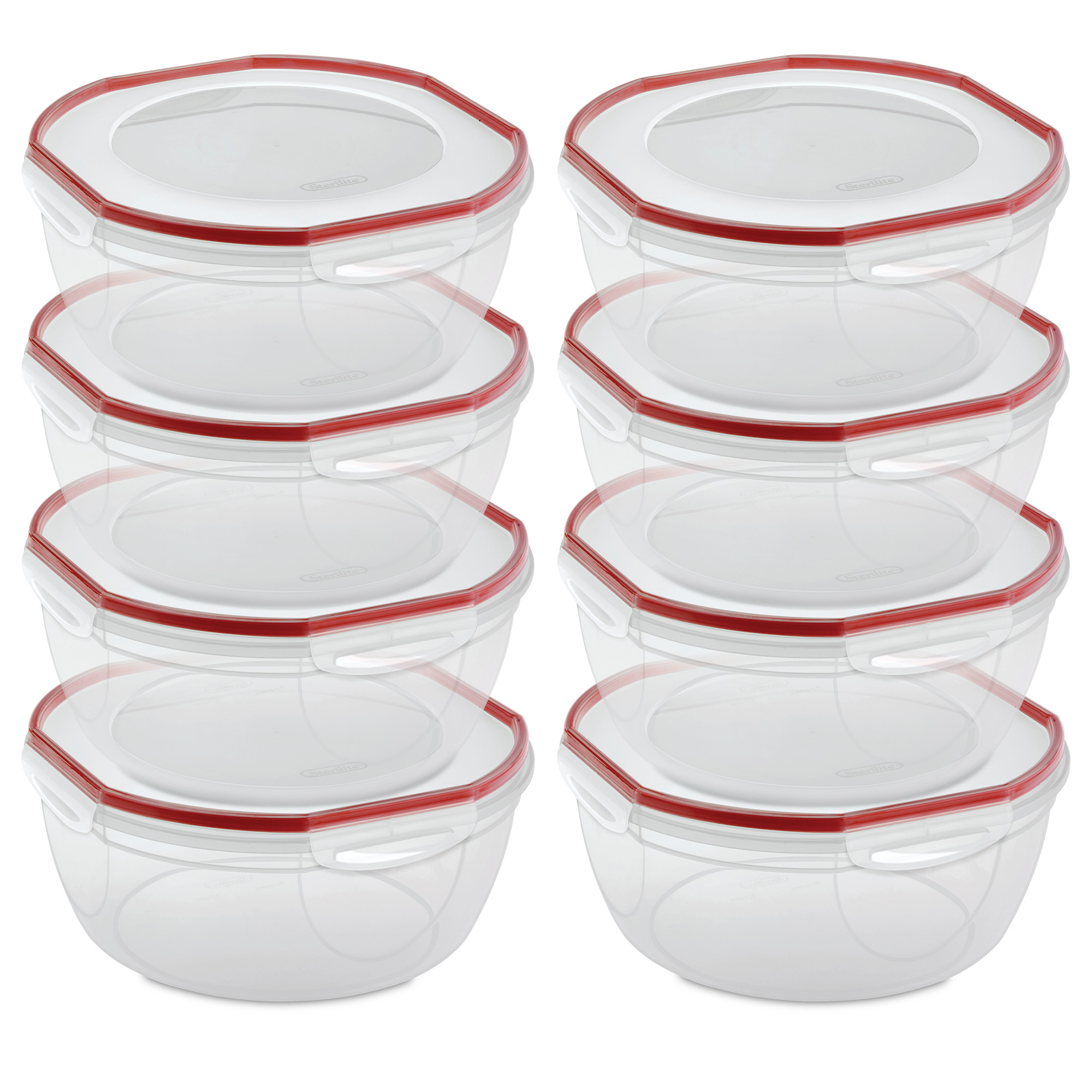 Enjoy an upgraded system of food storage organization with this 8-Pack of Ultra-Seal 8.10 Quart Plastic Food Storage Bowl Containers from Sterilite.
