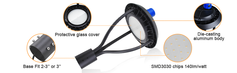 Super Bright & High Quality: This pole lights fixture have 120°beam angle, SMD 3030 LED chips , produces up to 140 lumen per watt, compared to other high pressure sodium lamps, high intensity discharge lamps, it's improved light utilization and uniformity, have a lifetime of 50,000 hours, environmentally friendly and energy efficient, save your money.