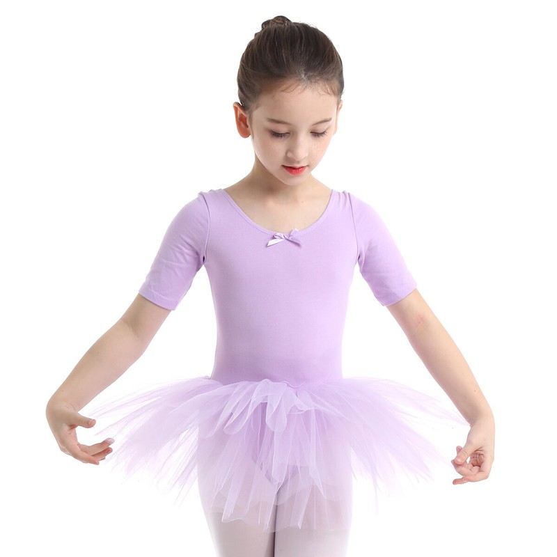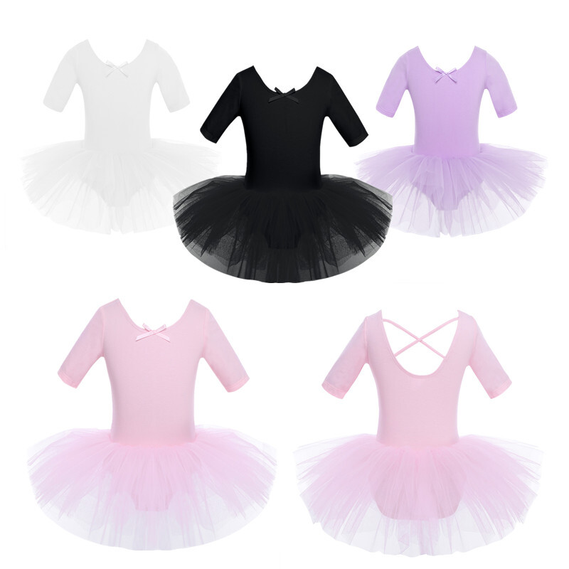 Ballett-Tanz-Trikotkleid für Mädchen, kurze Ärmel.