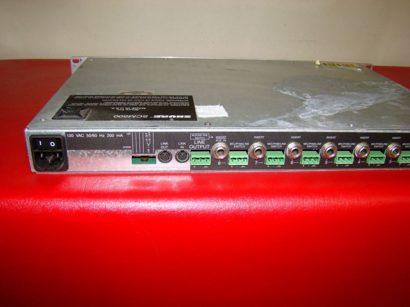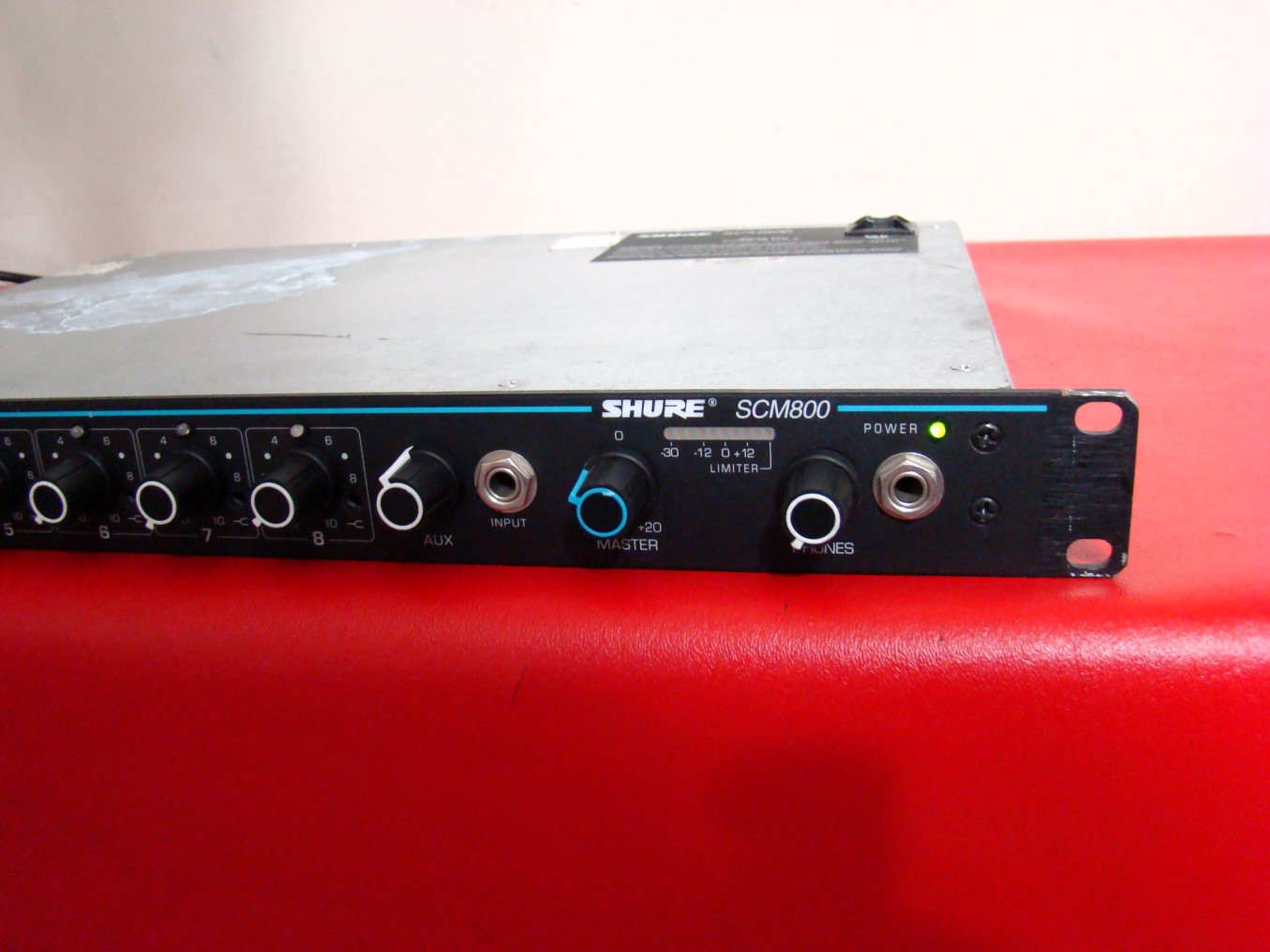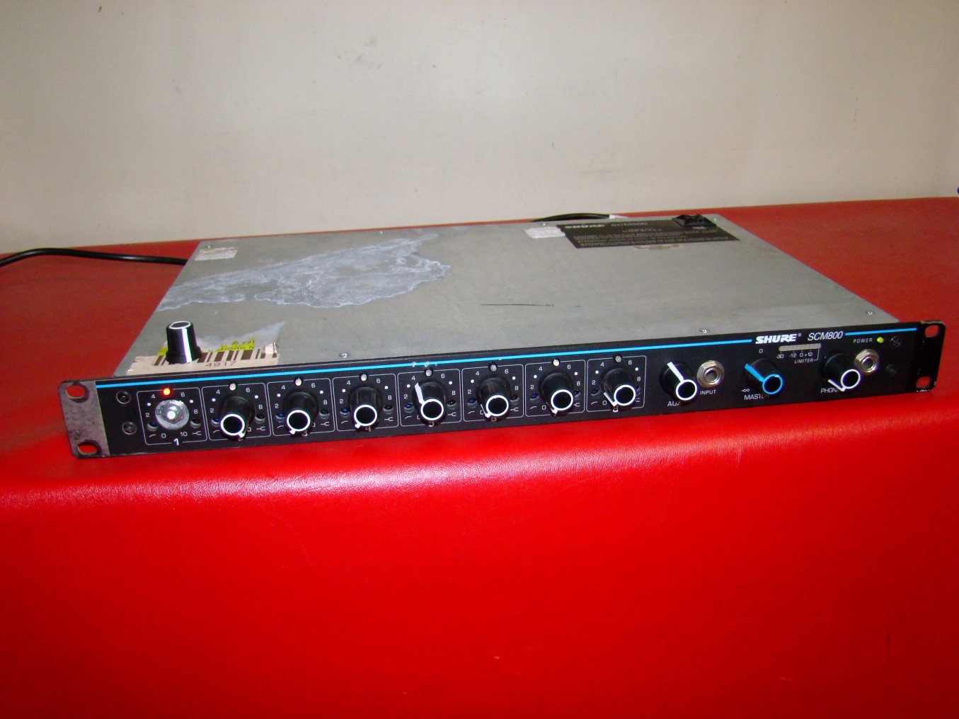 You are bidding on Shure SCM800 Rackmount Professional 8 Channel Microphone Mixer FOR PARTS. These unit pull out when working. Somehow channel 1 got damaged. When we tried to played it got broken. SELLING AS-IS NO WARRANTY. There are minor scratches/marks on body or screen if any but not major. Happy Bidding!!!