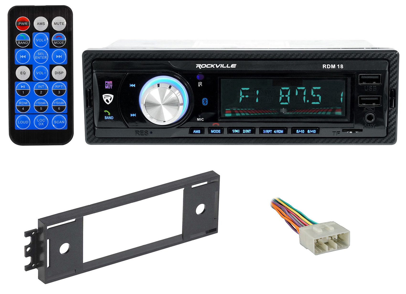 - Rockville RDM18 In-Dash Digital Media, AM/FM, MP3, USB, SD, Bluetooth Receiver with Remote