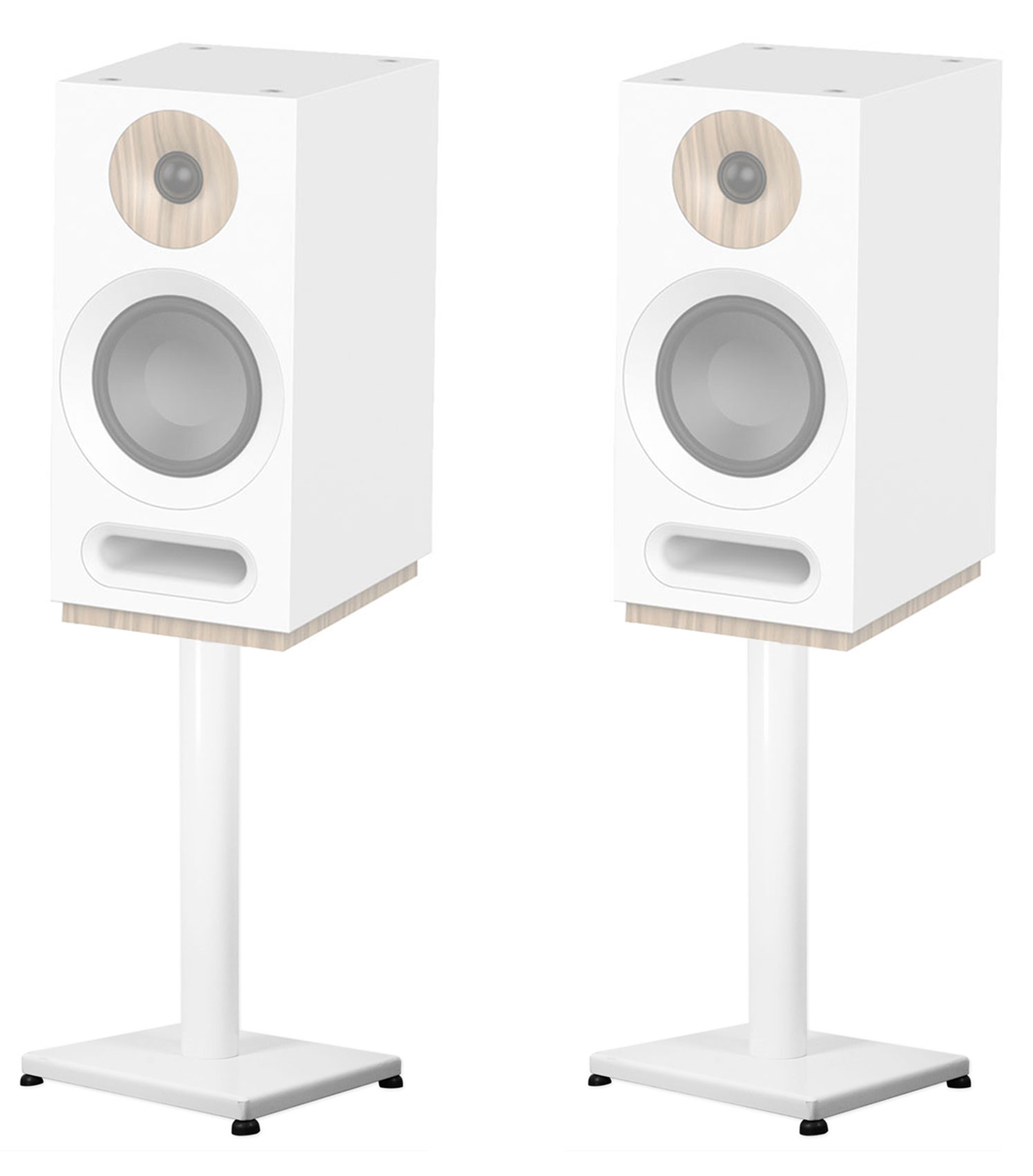 included with our stands are fully adjustable rubber feet and brass pegs. The rubber feet are used for hard floors and can be adjusted at different heights If your floor is not completely level. The brass pegs are used in rooms with carpet and can also be adjusted at different heights ensuring your speaker and stand are 100% level.