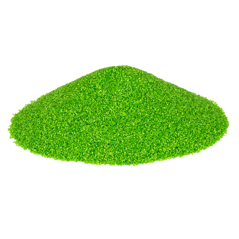 Bei diesem grünen Farbsand handelt es sich um eingefärbten Zierkies, der einerseits zum Basteln, andererseits aber auch zum Arrangieren und Dekorieren genutzt werden kann. Der Streusand in Grün hat eine Körnung zwischen 0,1 und 0,5 Millimetern und seine Lieferung erfolgt in einer praktischen 1kg Beutel. Der Quarzsand in Grün kann ausgezeichnet mit Deko-Sand in anderen Farben kombiniert werden. Ein Mix mit hellgrünem Dekosand bietet sich besonders gut an, um aussagekräftige Wohnraumdekorationen zu kreieren.