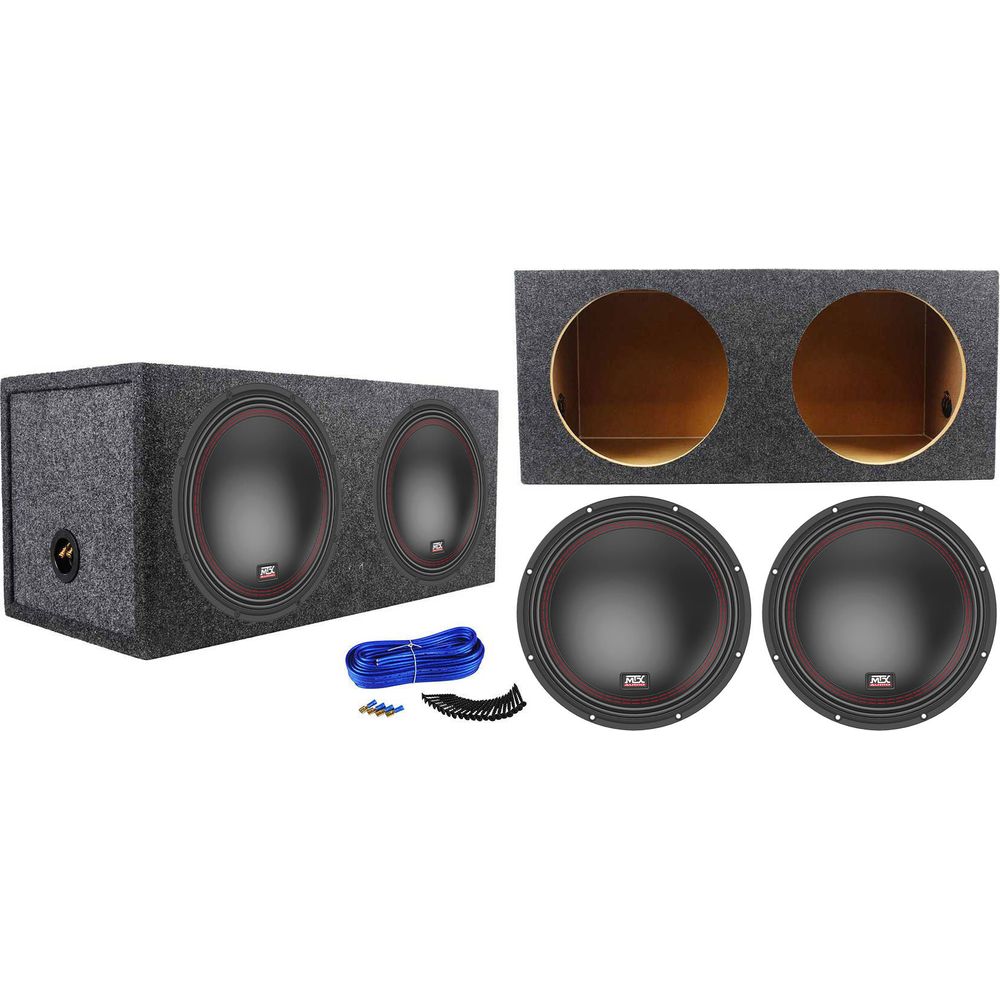 Package: (2) MTX 5510-22 10" 1600 Watt Peak/800 Watt RMS 2-Ohm Car Subwoofers + Rockville RD10 Dual 10" 1.0 cu. ft. Sealed Subwoofer Enclosure With Grade A 3/4" MDF, Made in America Using Only the Highest Quality Materials for the Best Performance and Sound From Your Subs + Dual Sub Box Enclosure Installation Kit: Speaker Wire, Screws, Spade Terminals