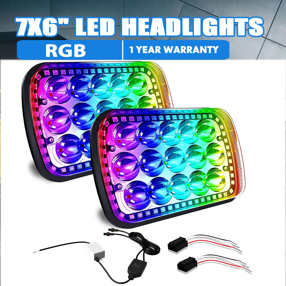 2PCS H6054 Led Headlights 7x6 5x7 Auto Head Lamp Replacement 2PCS Hi/Low Sealed Beam with RGB Halo Function Compatible with Jeep Wrangler YJ XJ Cherokee E250 Chevy Van Truck Toyota Mr2