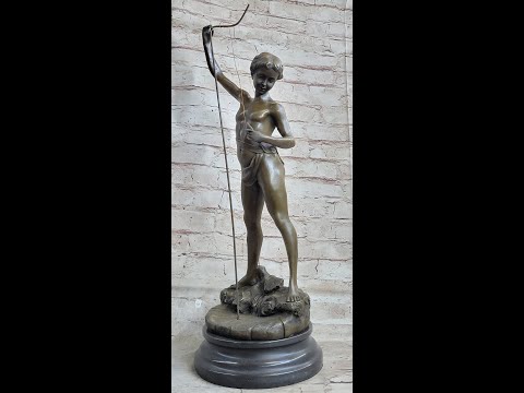 Molded using the ancient lost-wax casting method, this sculpture showcases the skill and dedication of its creator. The technique allows for intricate detailing, visible in the boy's form and expression. The brown patina stain not only adds depth to the sculpture but also ensures its preservation, giving the piece a timeless quality that will endure through the years.