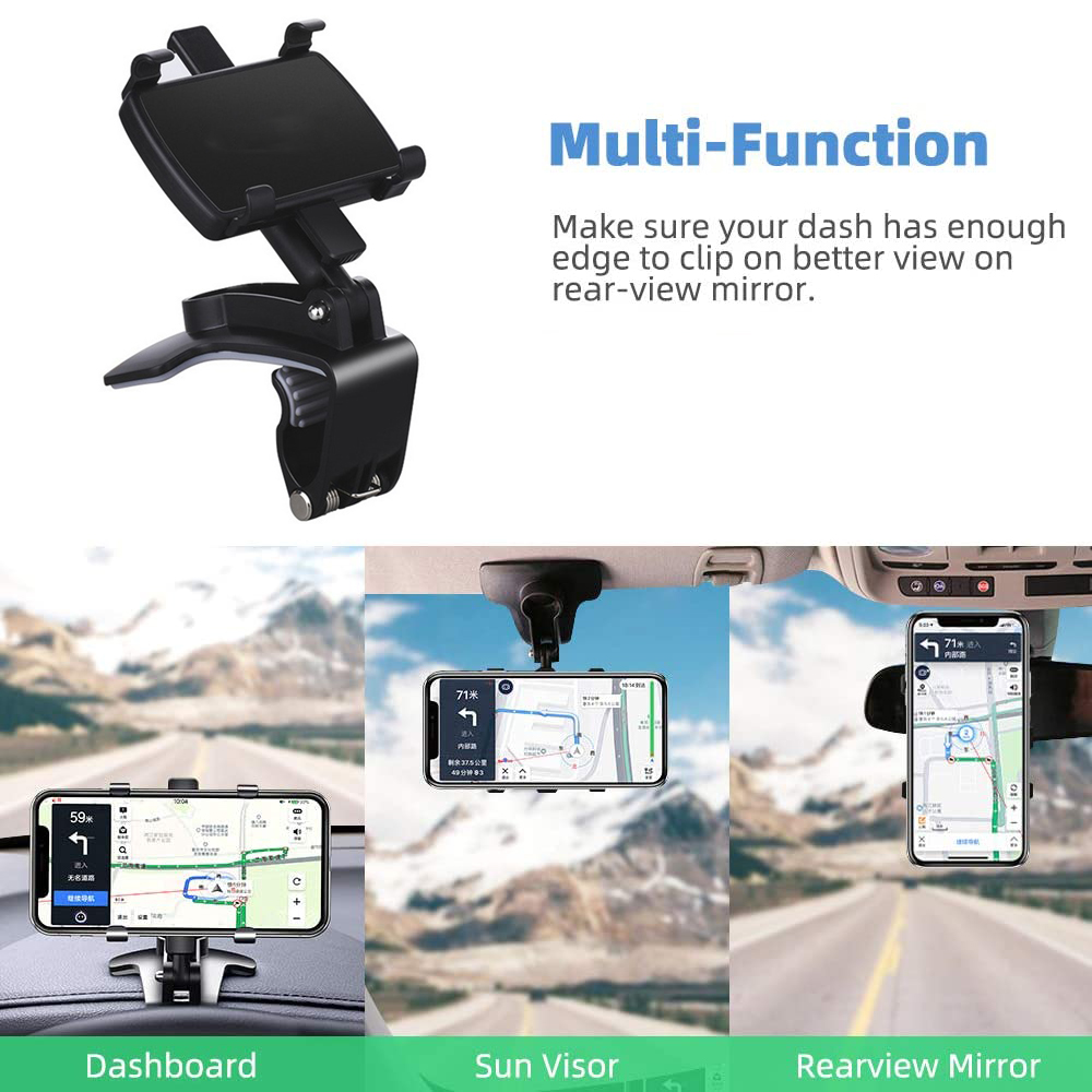 One Car Holder For Multiple Purposes: This clip car mount more convenient, can be used in car dashboard, sun visor, rearview mirror. Multiple purposes can provide you with more convenience and more use needs in the car.