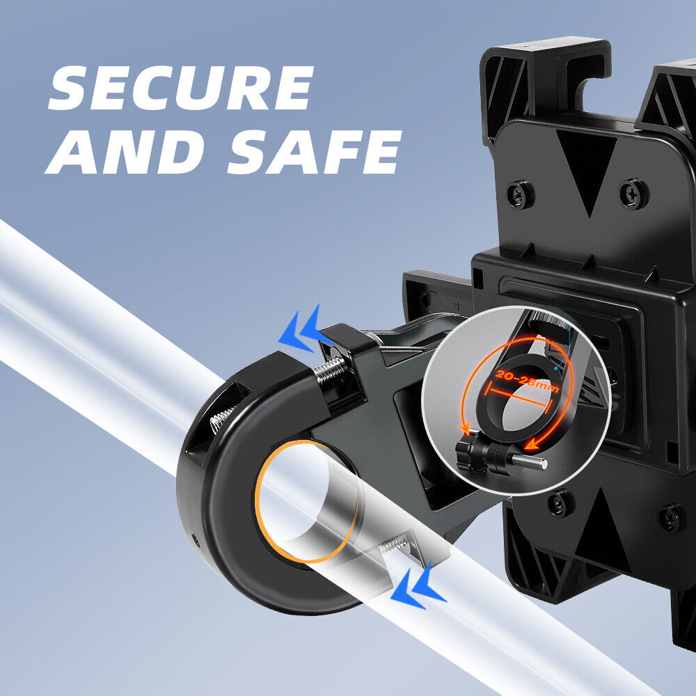 [Hold Your Phone Like A Vise] Both the clamp and mount are cushioned for protection of the phone and handlebar. Has a high-speed lock switch, you can double lock your phone when you ride at bumpy road.