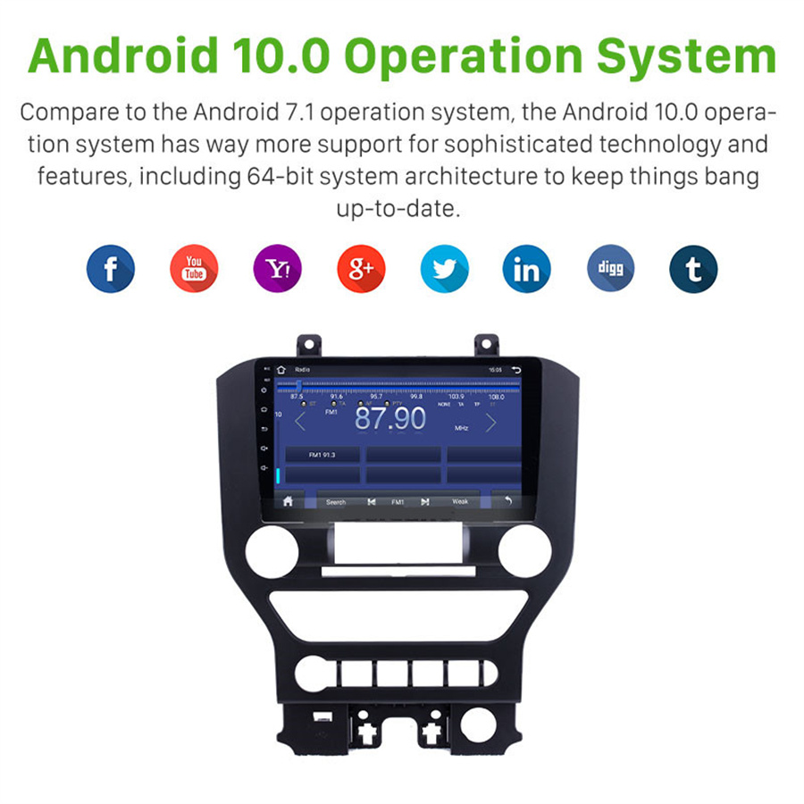 9 Inch Car Android 10.0 GPS Navigation Headunit Radio Stereo 1+16G For Ford Mustang 2015-2017 Left-hand-drive only