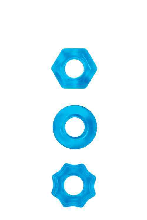 - Vielseitig: Tragen Sie alle 3 auf einmal, gestapelt. Oder wickeln Sie sie hinter Ihren Hodensack, um die Ejakulation zu verzögern.