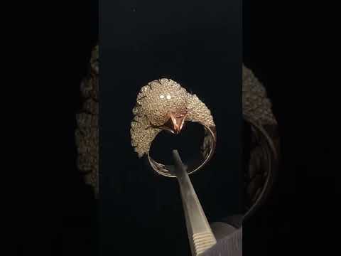 Stunning 3.71 Carats Round Brilliant Cut Pave Diamonds Sapphire Eagle Animal Ring In Fine 18K Gold