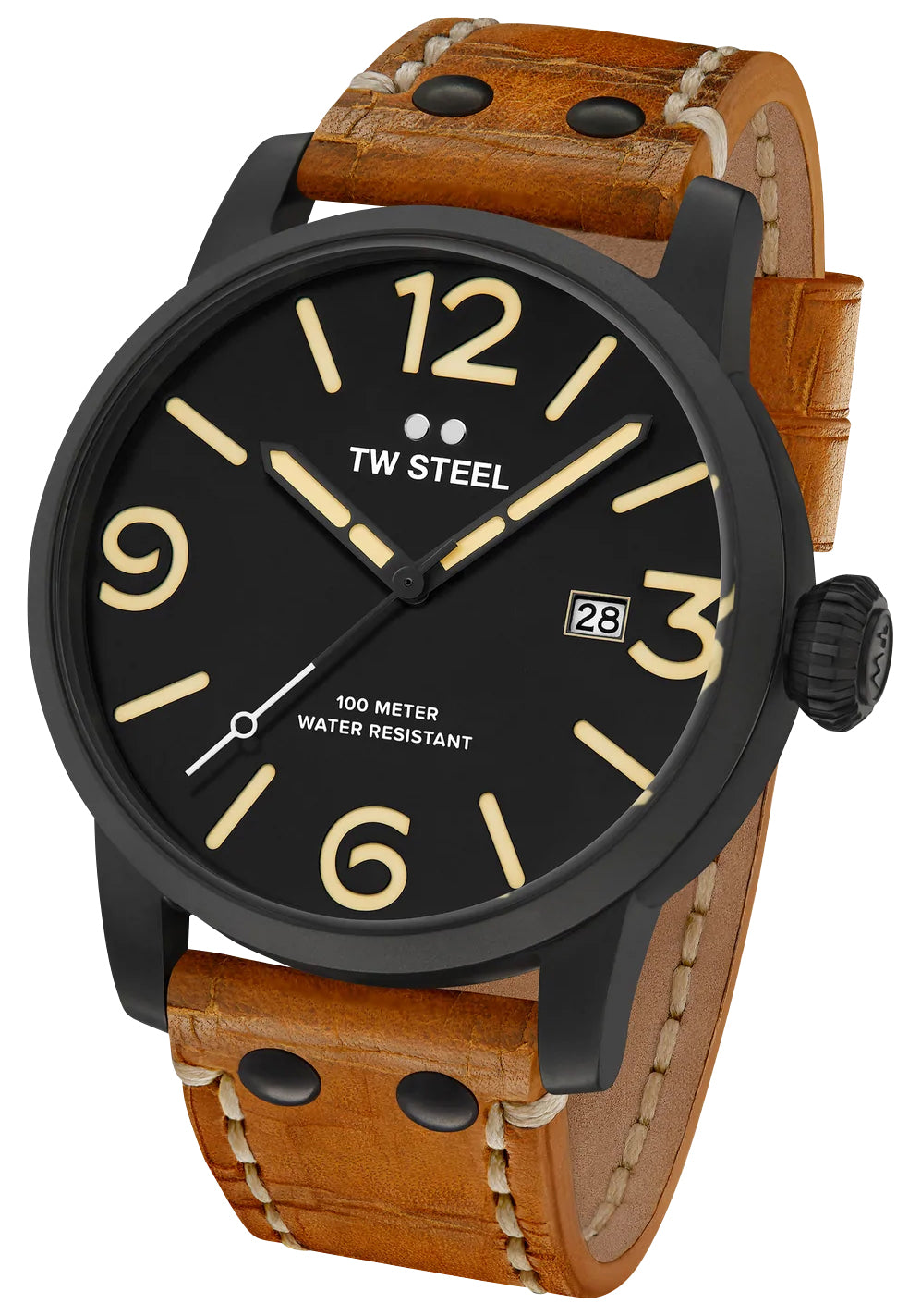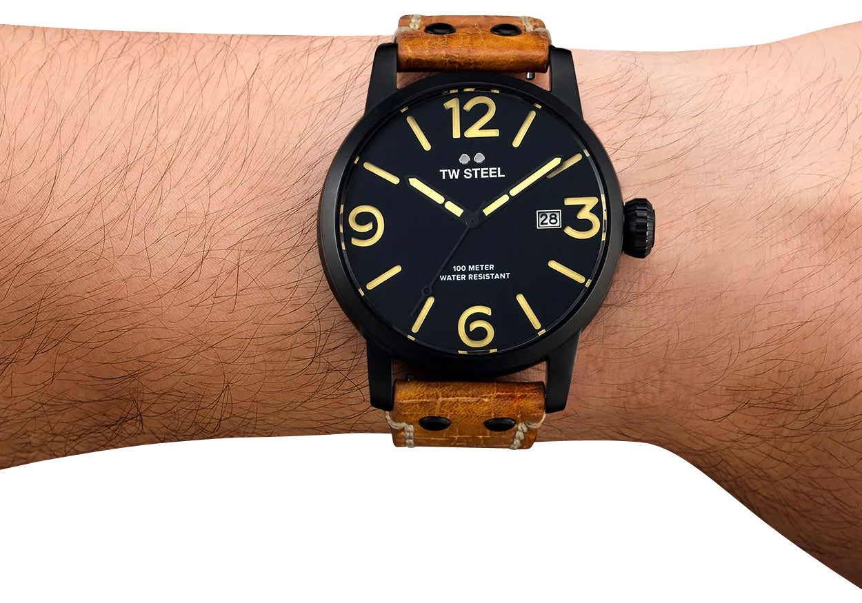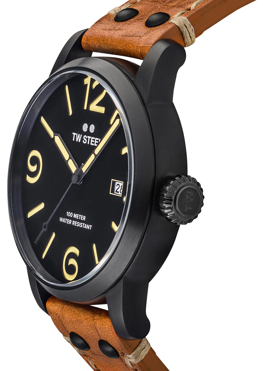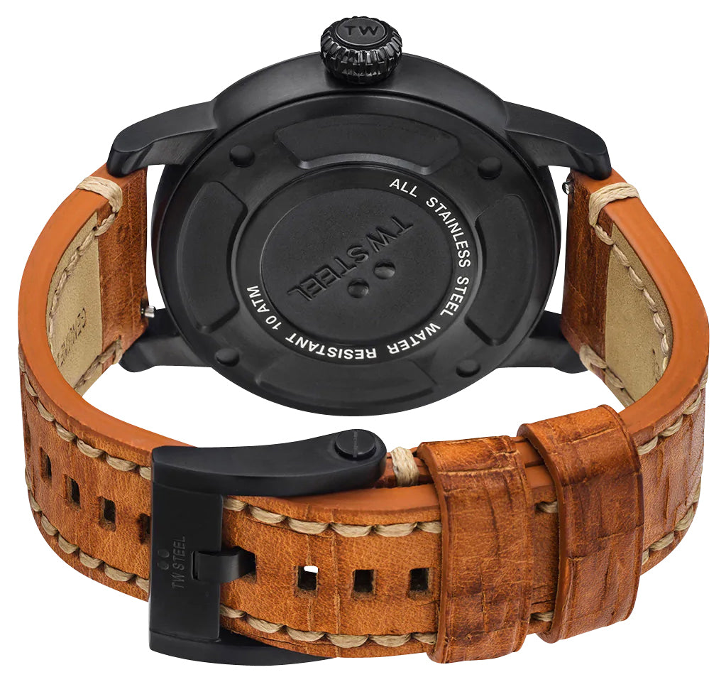 Like all of our watches, this TW Steel Maverick Black PVD Black Dial Brown Leather Strap Date Quartz Mens Watch is brand new and comes in its original packaging.