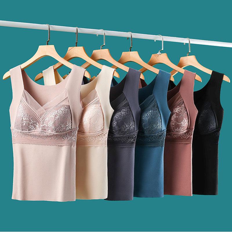 Lady Thermal Slim Camisole Tank Tops Vest with Chest Pad Fleece Lined Warm Soft