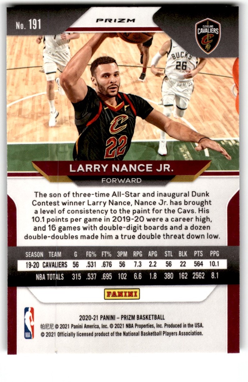 | 2020-21 Panini Prizm Green Larry Nance Jr. #191 Cleveland Cavaliers |
