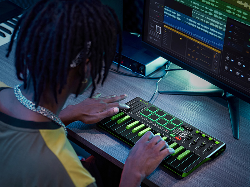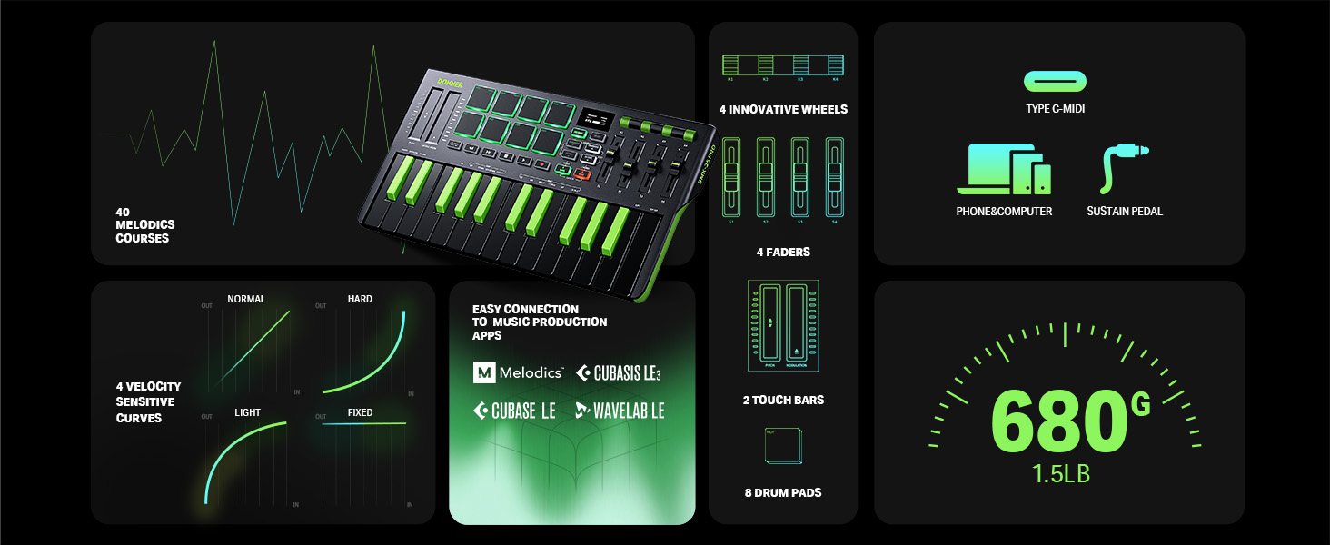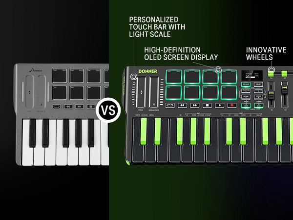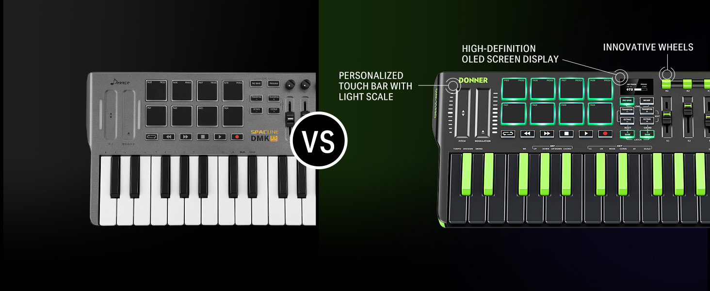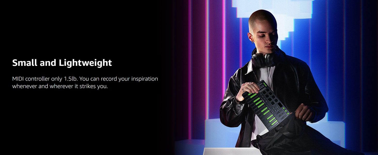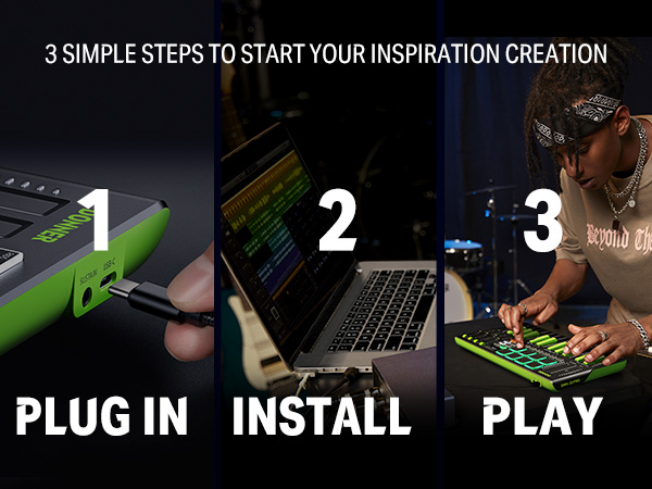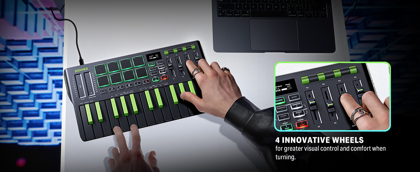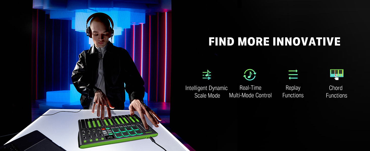 【 Real-time Multi-Mode Control】The MIDI controller's powerful arpeggio, note repeat, and chord functions allow you to create the music clips you need whenever and wherever you need them, fully open up the world of your expression and creativity, make music performance more enjoyable, and follow the pace of Donner DMK-25 Pro to explore more playability!