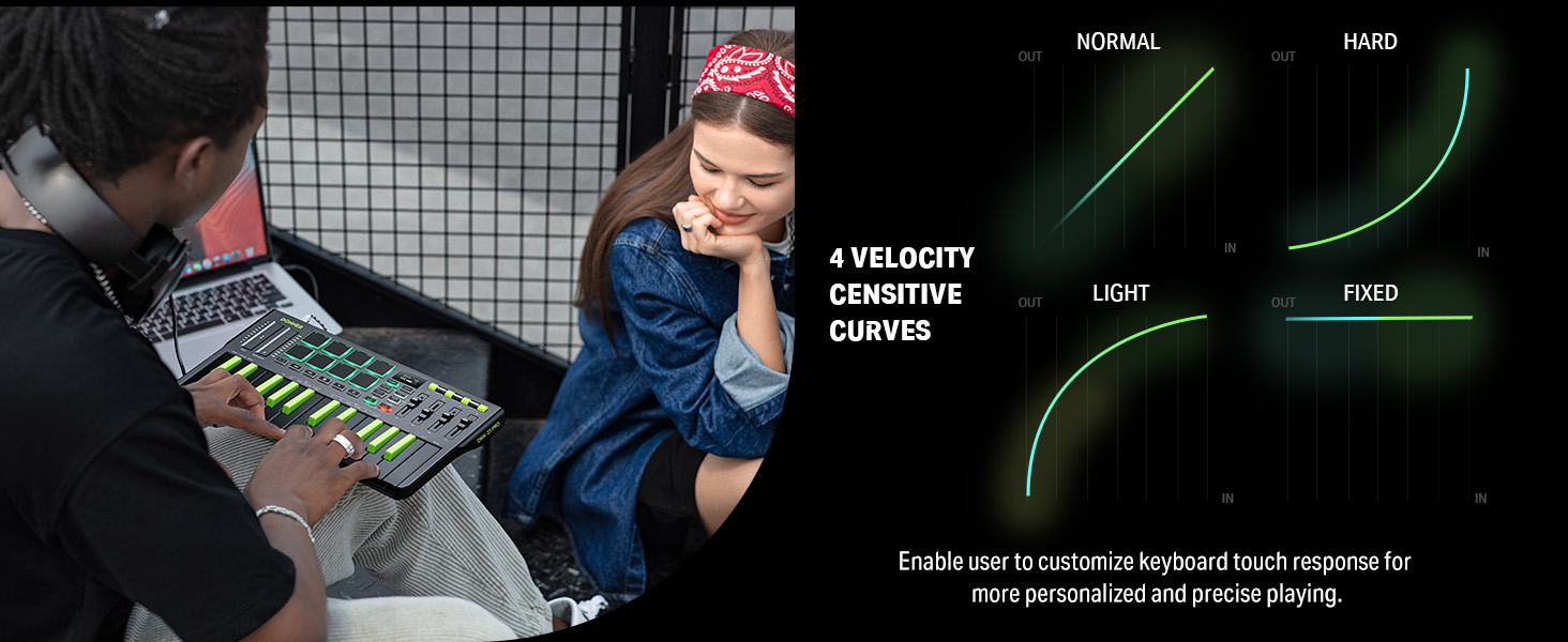 【 4 Exquisite Velocity-Sensitive Curves 】The velocity-sensitive keys and eight velocity-sensitive pads have the pressure and touch of a standard keyboard, but they are also very responsive.