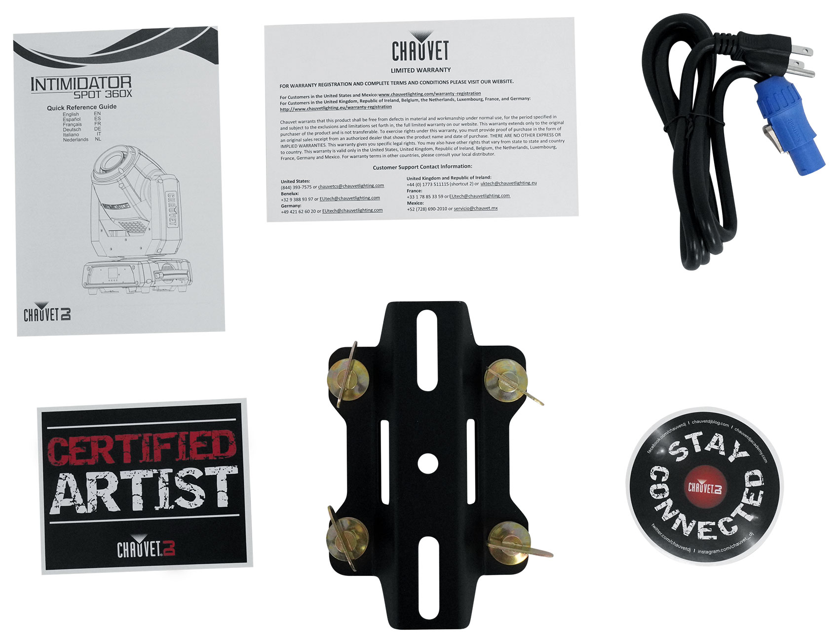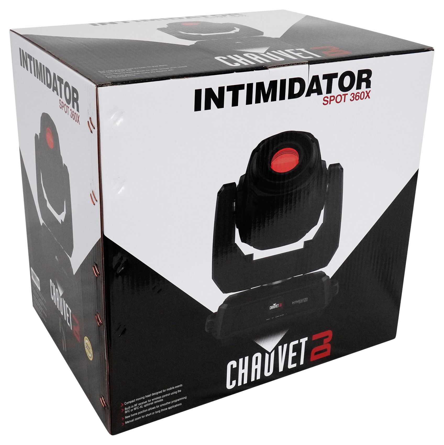 Meet Xcellence with Intimidator Spot 360X, a compact moving head packed with features to make any mobile event Xhilarating! This mover has a built-in RF receiver for wireless control using the new RFC or RFC XL optional remotes that put the power of programming a button push away. An updated CTO color wheel provides fresh color looks and a new starting home position allows for smoother programming and dual rotating prisms split the beam for thrilling effects and wider area coverage. Intimidator Spot 360X is versatile with manual zoom for short or long throw applications. Motorized zoom lets you project crisp gobos from nearly any distance and beams always remain on the dance floor using the built-in, innovative Totem mode. Intimidator Spot 360X also lets you set, save, and recall 1 scene manually, directly from the full color LCD display.