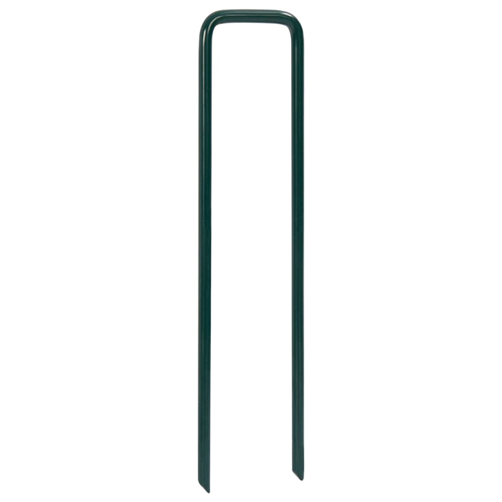 Aus Eisen gefertigt, sind die Rasennägel korrosions- und witterungsbeständig. Das schräge Spitzendesign macht das Anbringen einfacher und müheloser. Die U-förmigen Stifte können den Kunstrasen fixieren, um zu verhindern, dass er durch den Wind verweht wird.