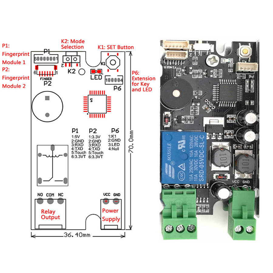 For shipping list, please see the following photo: K215-V1.2 Fingerprint Control Board+R503 Fingerprint module+Nut |