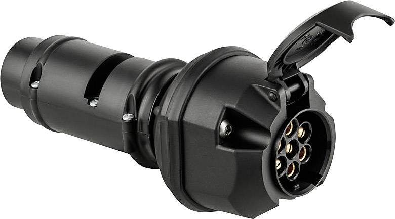 Con questo riduttore di tensione potete utilizzare un rimorchio a 12 V su una motrice da 24 V senza grandi investimenti o conversioni. Il riduttore di tensione è per una presa a 7 poli a 12 V (predisposto per 24 V) DIN/ISO 1724 su presa a 7 poli a 12 V. Motrice a 7 poli Presa a 12 V (predisposto per 24 V) DIN/ISO 1724, il rimorchio ha una spina a 7 poli DIN/ISO 1724. Per veicolo di re-importazione, veicolo BW, veicoli fuori strada con impianto a 24 V.