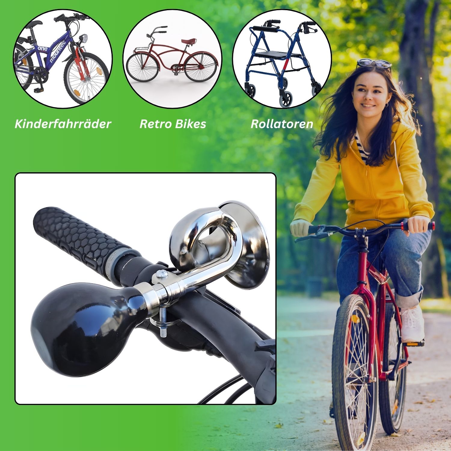 Neben ihrer primären Funktion als Sicherheitsvorrichtung verleiht die Hupe dem Fahrrad durch ihre Ästhetik einen dekorativen Touch. Sowohl für Fahrräder als auch für Roller, Laufräder oder Rollatoren geeignet, macht die Fahrradhupe das Fahren optisch attraktiver und angenehmer.