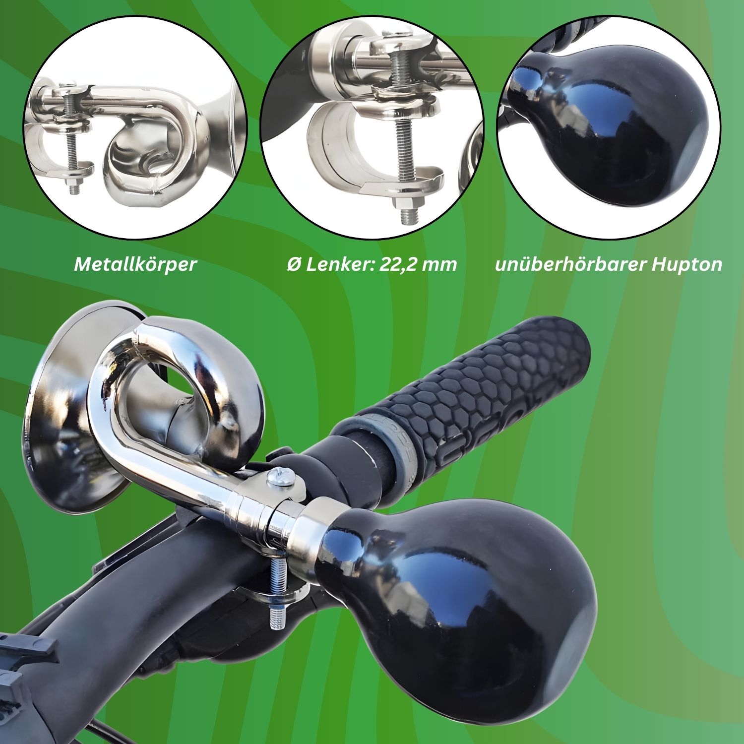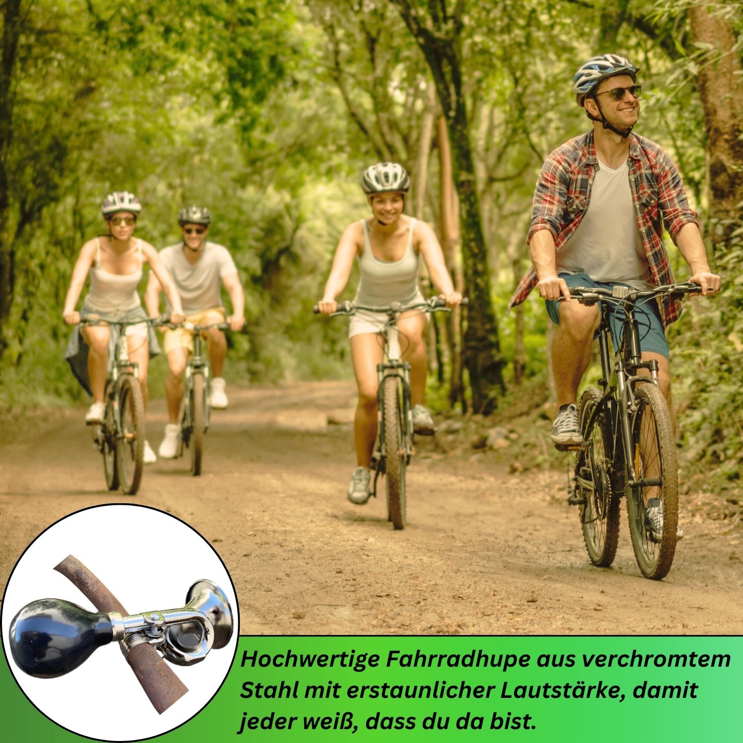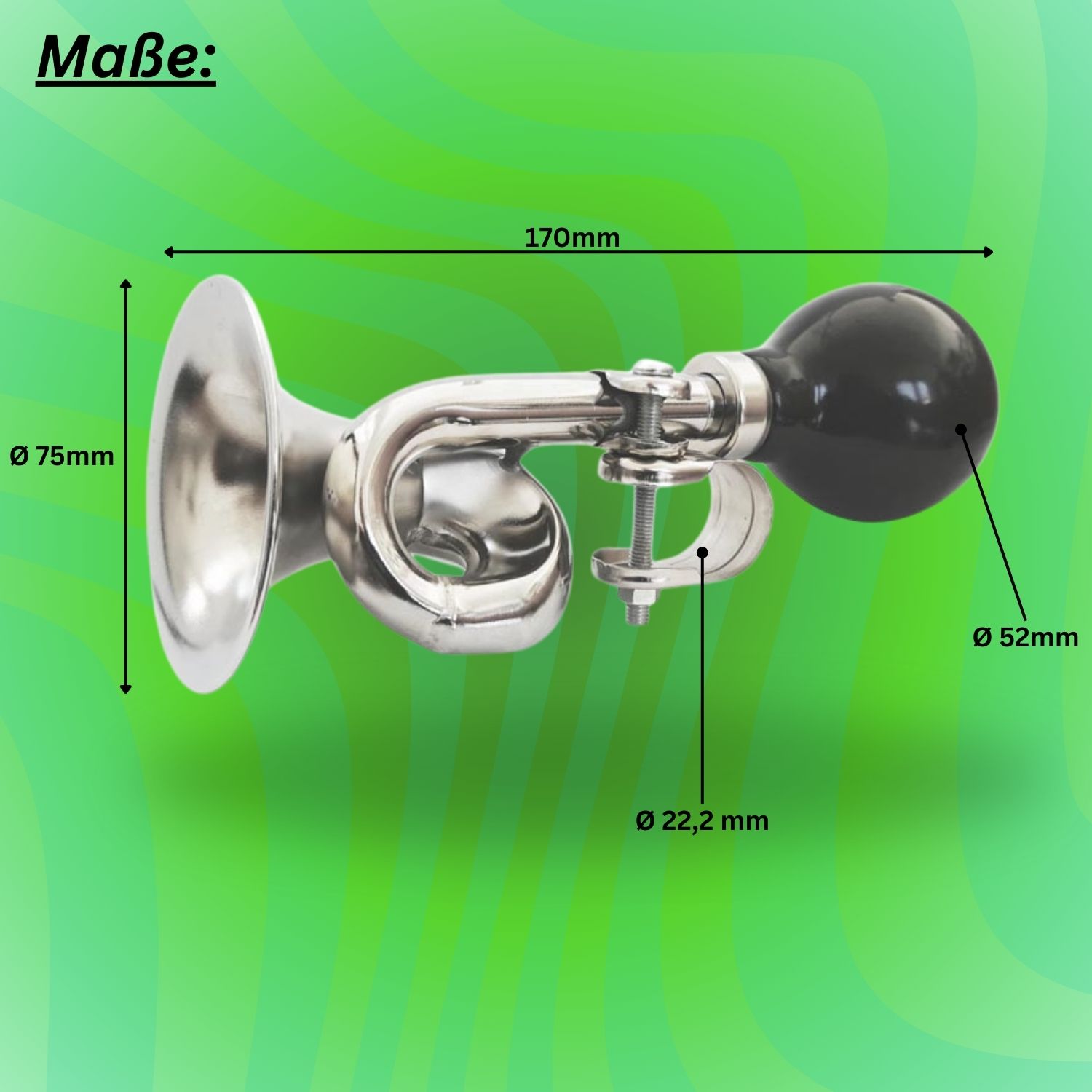 Mit unserer Retro-Fahrradhupe wird jede Fahrradtour zum Erlebnis! Die Hupe verbindet Sicherheit mit Spaß und sorgt dafür, dass man im Straßenverkehr gut gehört und gesehen wird. Die laute und deutliche Hupe warnt Fußgänger und andere Radfahrer wirkungsvoll - so bleiben Sie sicher unterwegs.