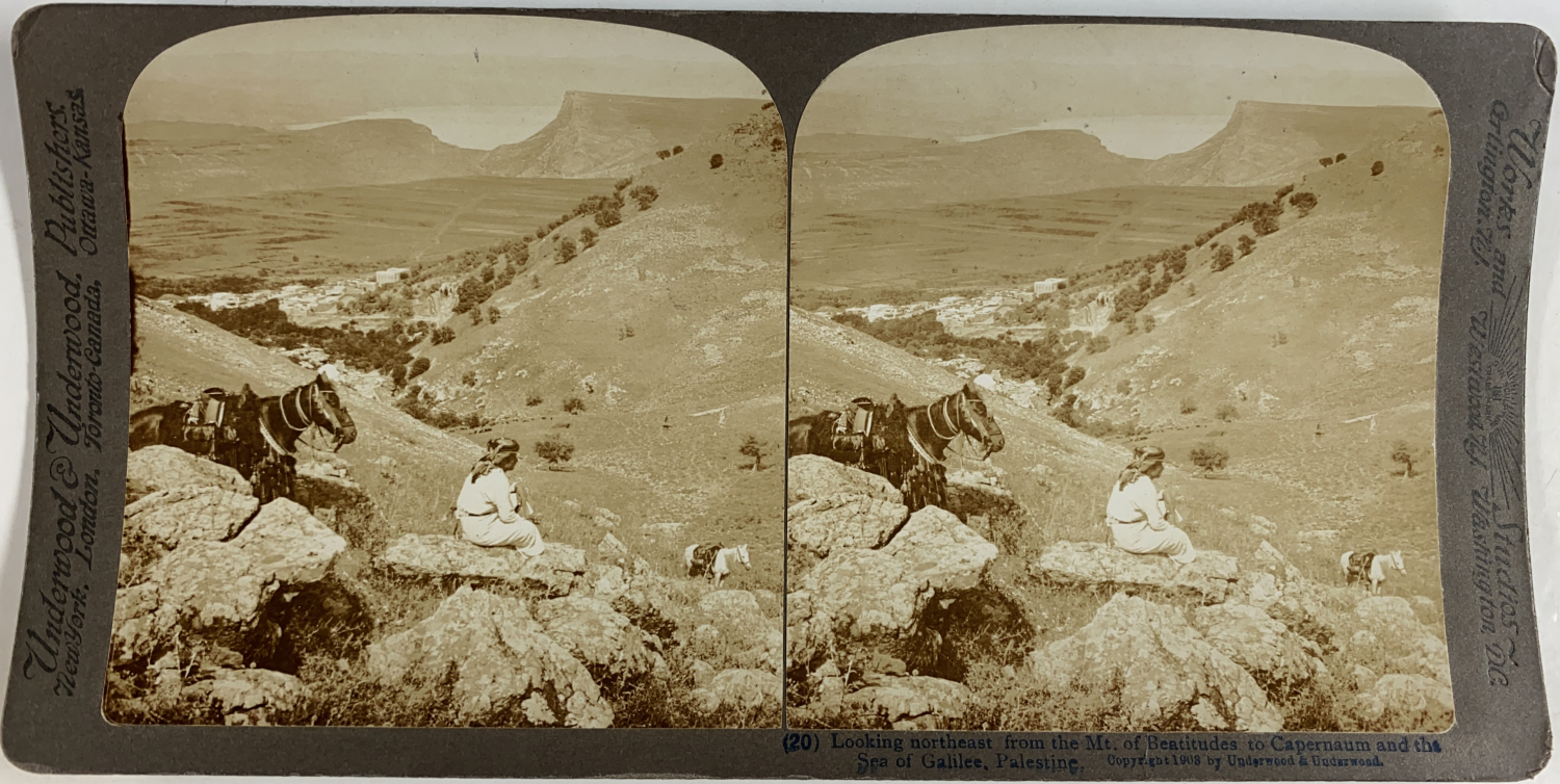 Palestine, Mont des Béatitudes vers Capharnaüm et la mer de Galilée, Vintage print, ca.1880, Stéréo