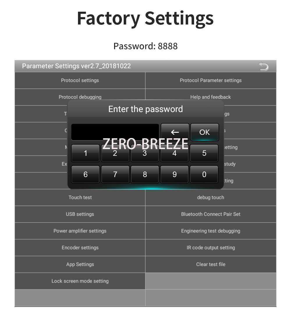 Main functions: Bluetooth, FM radio, remote control, touch screen, USB Mirror Link function, Aux In, rear camera input