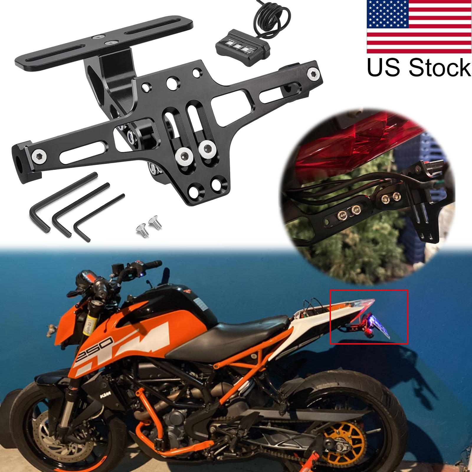 • This listing features 1Pc Universal Motorcycle Multi-angle Adjustable License Plate Holder Bracket with LED License Light.