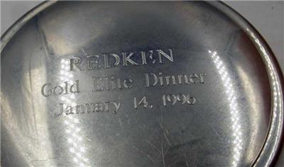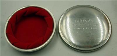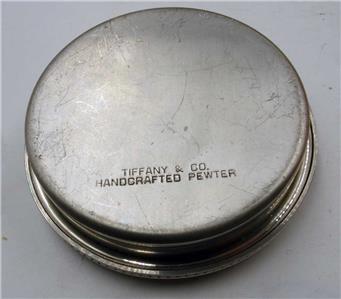 VINTAGE TIFFANY'S HANDCRAFTED PEWTER 3" ROUND TRINKET REDKEN COMPANY PRESENTATION. 3" in diameter with removable red velvet lining. Light scratches on the back. Redken makes products for hair care. See the photos, they are part of the description.