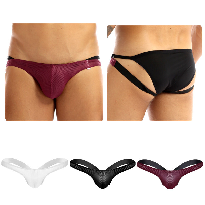 Herren Glänzend Low Waist Slips Bikini Briefs T-Back Tanga G-String Unterwäsche