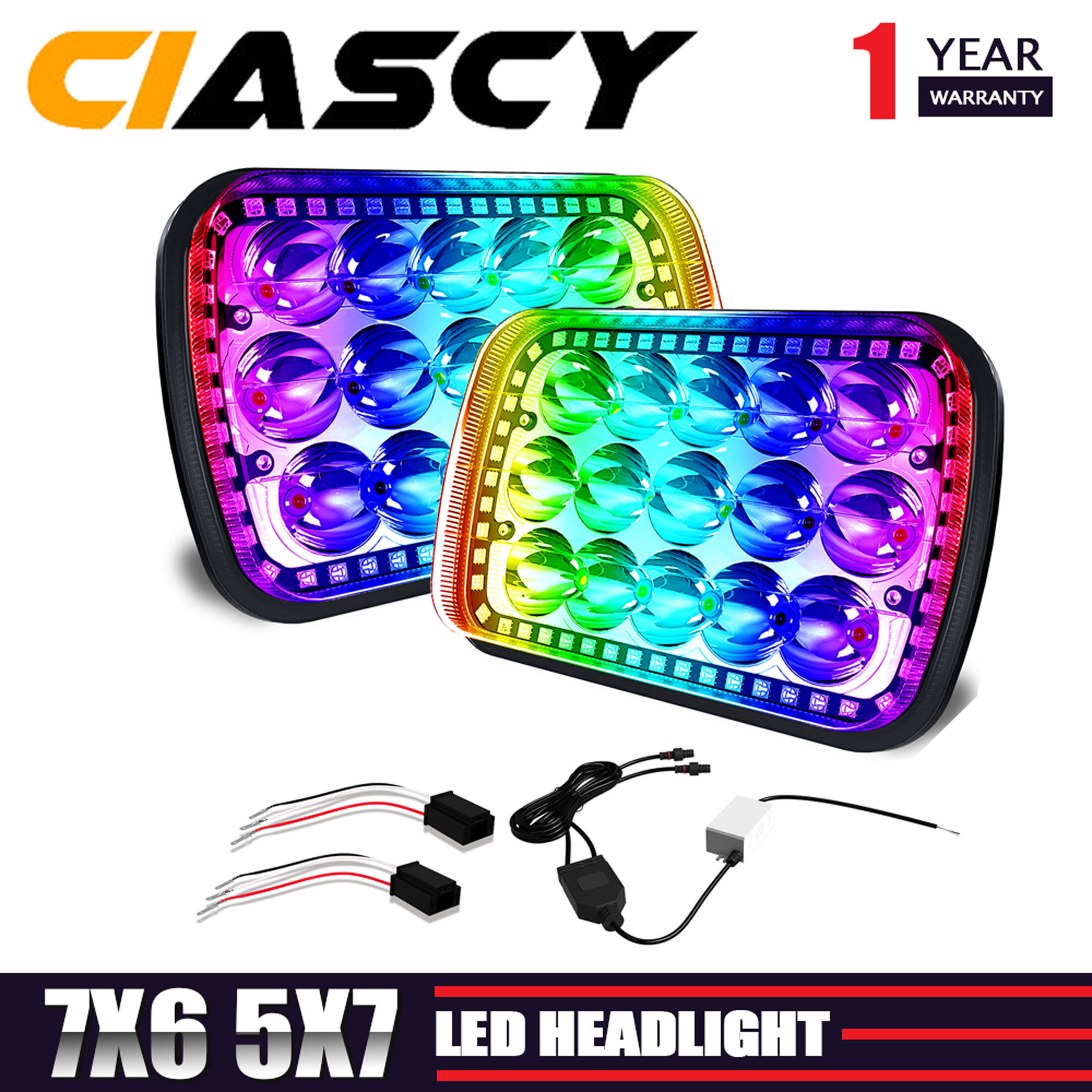 2PCS H6054 Led Headlights 7x6 5x7 Auto Head Lamp Replacement 2PCS Hi/Low Sealed Beam with RGB Halo Function Compatible with Jeep Wrangler YJ XJ Cherokee E250 Chevy Van Truck Toyota Mr2