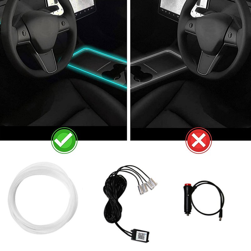 For 2021 2022 Tesla Model 3 Y Interior Car Neon Lights (Center Console+Dashboard+Seat Back+4 Foot Lights Accessories), For Tesla Ambient Lighting, APP Control RGB LED Strip Lights with Multiple Modes