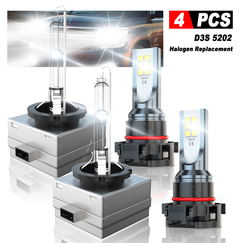 One Pair of 6000K super white D3S HID Headlight High Low Beam bulbs