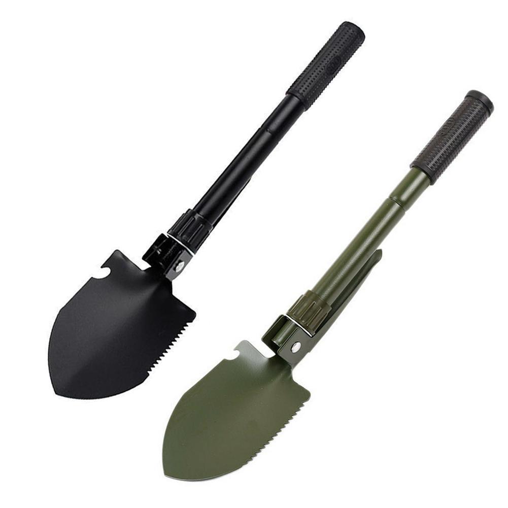 Mini pala d'emergenza tipo militare in robusto metallo verniciato.