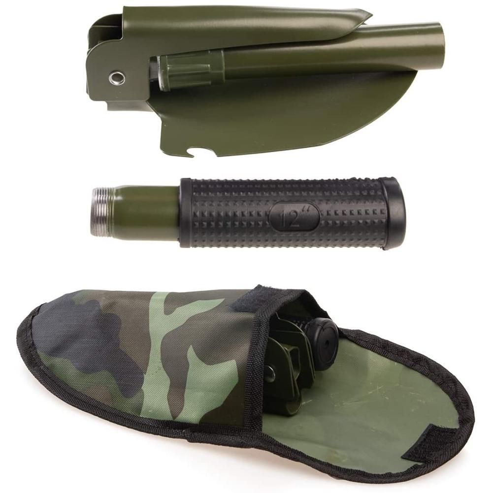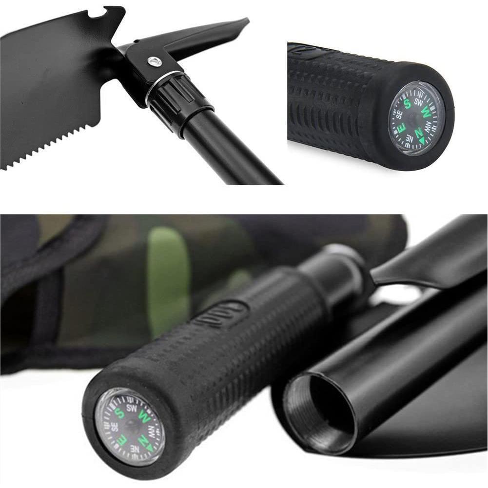 MINI PALA RICHIUDIBILE 5 in 1 BADILE + PICCONE + SEGA + BUSSOLA + APRIBOTTIGLIE IDEALE PER CAMPEGGIO EMERGENZA SOPRAVVIVENZA + CUSTODIA